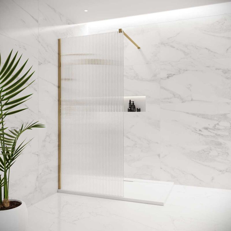 Foss Reeded Walk In Shower Enclosure - Brushed Brass