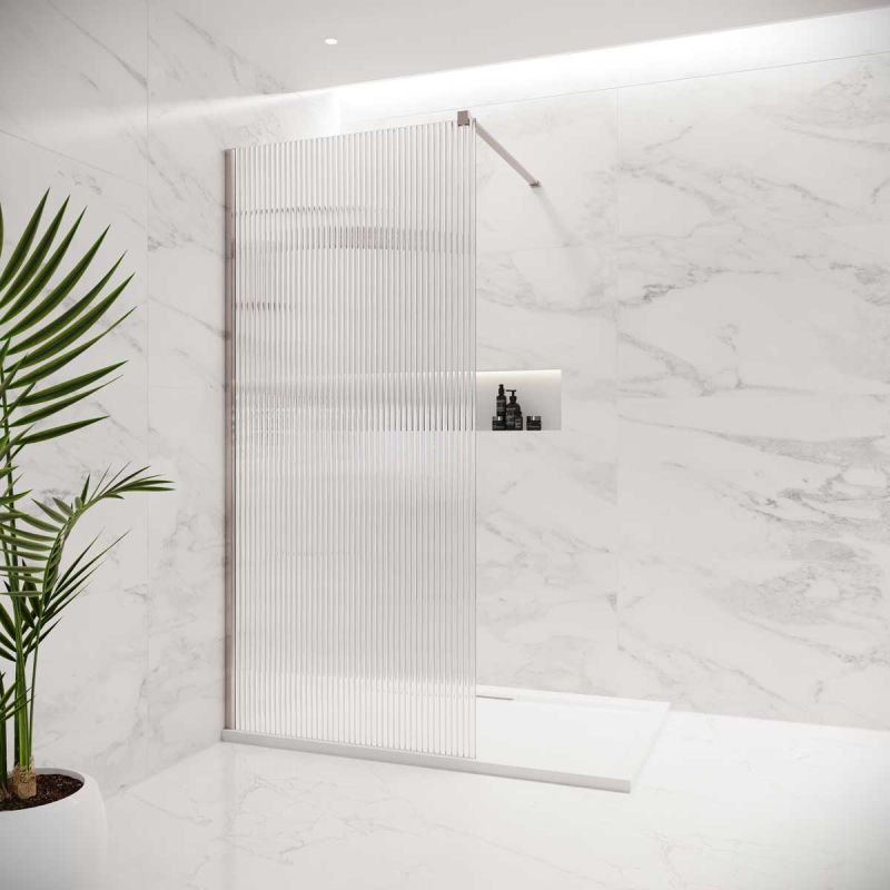 Transform your bathroom into a luxurious, spa-like sanctuary with the Foss walk-in shower enclosure. Expertly designed with a single pane of reeded 8mm toughened safety glass, this premium shower enclosure combines exceptional strength with sophisticated style. Its frameless, minimalist design enhances the visual space of your bathroom, creating a clean, open, and modern aesthetic that complements a wide range of interior schemes.