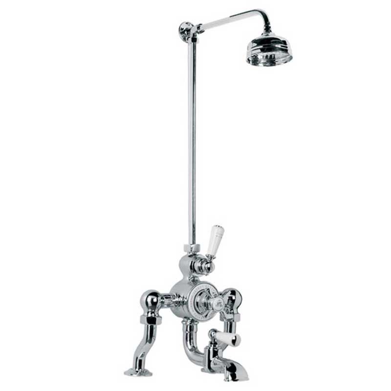 Lefroy Brooks Godolphin Deck Mounted Exposed Thermostatic Bath And Mixing Valve, Riser Kit, 5 inch Rose And Adjustable Riser Pipe Bracket GD8821