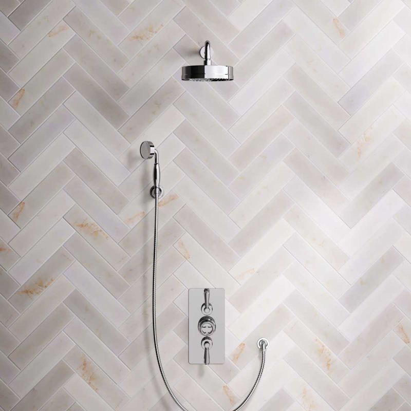 The Klee shower is a refined expression of industrial design, combining precision-engineered performance with bold, architectural detailing. Featuring a concealed dual outlet thermostatic valve, 8 inch overhead rose, separate handshower hook mount and tactile handwheel controls, it delivers a confident, utilitarian aesthetic without compromising on luxury. Available in a wide range of configurations and premium finishes to suit both exposed and concealed installations.