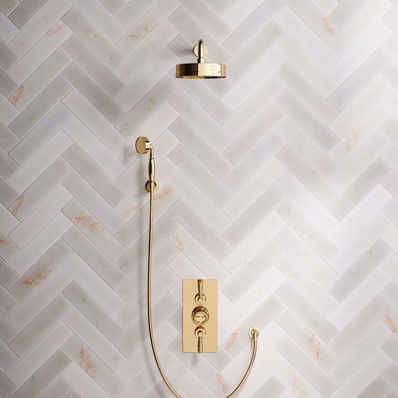 The Klee shower is a refined expression of industrial design, combining precision-engineered performance with bold, architectural detailing. Featuring a concealed dual outlet thermostatic valve, 8 inch overhead rose, separate handshower hook mount and tactile handwheel controls, it delivers a confident, utilitarian aesthetic without compromising on luxury. Available in a wide range of configurations and premium finishes to suit both exposed and concealed installations.