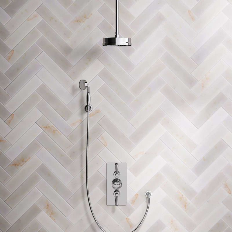 Klee Dual Outlet Concealed Shower with Hook Mount, 210mm Ceiling Arm & 8" Rose - Metal Lever - Chrome