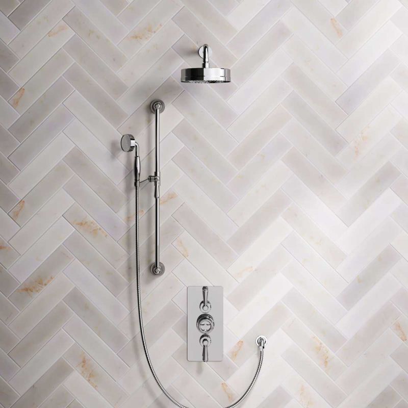 Klee Dual Outlet Concealed Shower with Slider Rail, 300mm Wall Arm & 8" Rose - Metal Lever - Chrome