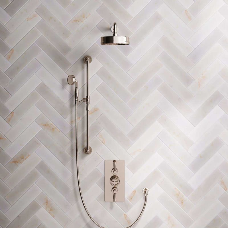 The Klee shower is a refined expression of industrial design, combining precision-engineered performance with bold, architectural detailing. Featuring a concealed dual outlet thermostatic valve, 8 inch overhead rose, separate slider rail handshower and tactile handwheel controls, it delivers a confident, utilitarian aesthetic without compromising on luxury. Available in a wide range of configurations and premium finishes to suit both exposed and concealed installations.