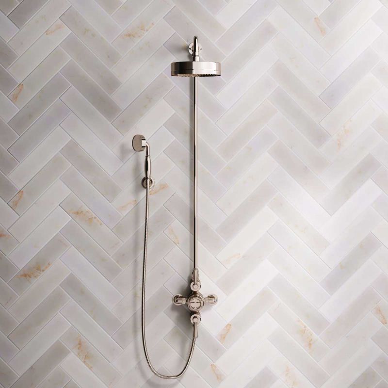 The Klee shower is a refined expression of industrial design, combining precision-engineered performance with bold, architectural detailing. Featuring a concealed dual outlet thermostatic valve with rigid riser, 8 inch overhead rose, separate handshower hook mount and tactile handwheel controls, it delivers a confident, utilitarian aesthetic without compromising on luxury. Available in a wide range of configurations and premium finishes to suit both exposed and concealed installations.