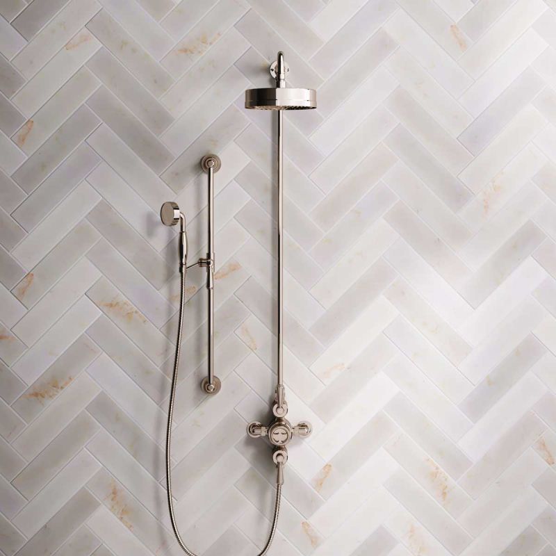 The Klee shower is a refined expression of industrial design, combining precision-engineered performance with bold, architectural detailing. Featuring a concealed dual outlet thermostatic valve with rigid riser, 8 inch overhead rose, separate slider rail handshower and tactile handwheel controls, it delivers a confident, utilitarian aesthetic without compromising on luxury. Available in a wide range of configurations and premium finishes to suit both exposed and concealed installations.