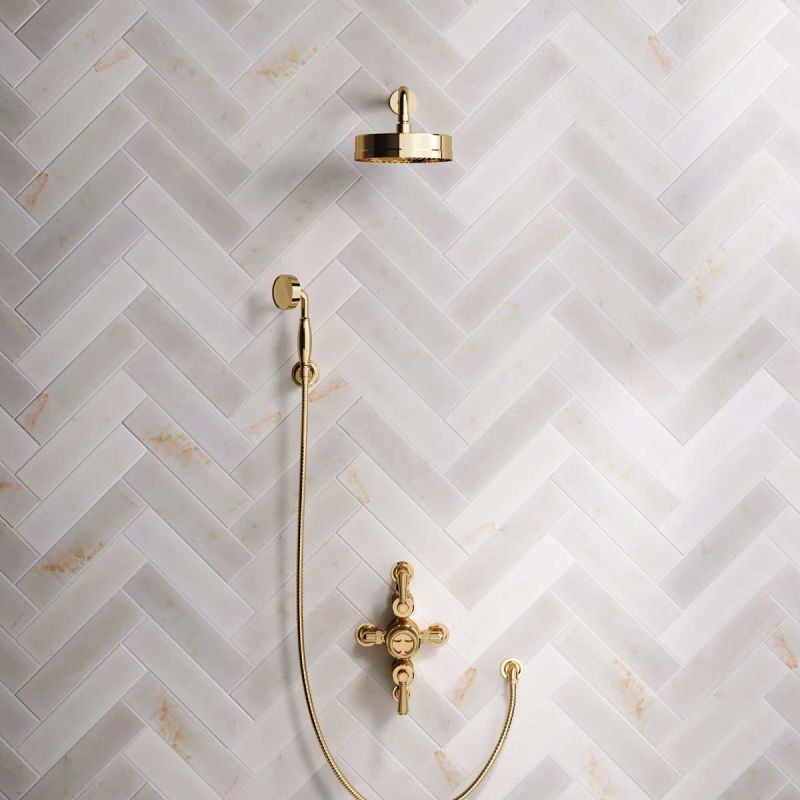 The Klee shower is a refined expression of industrial design, combining precision-engineered performance with bold, architectural detailing. Featuring a semi exposed dual outlet thermostatic valve, 8 inch overhead rose, separate handshower hook mount and tactile handwheel controls, it delivers a confident, utilitarian aesthetic without compromising on luxury. Available in a wide range of configurations and premium finishes to suit both exposed and concealed installations.