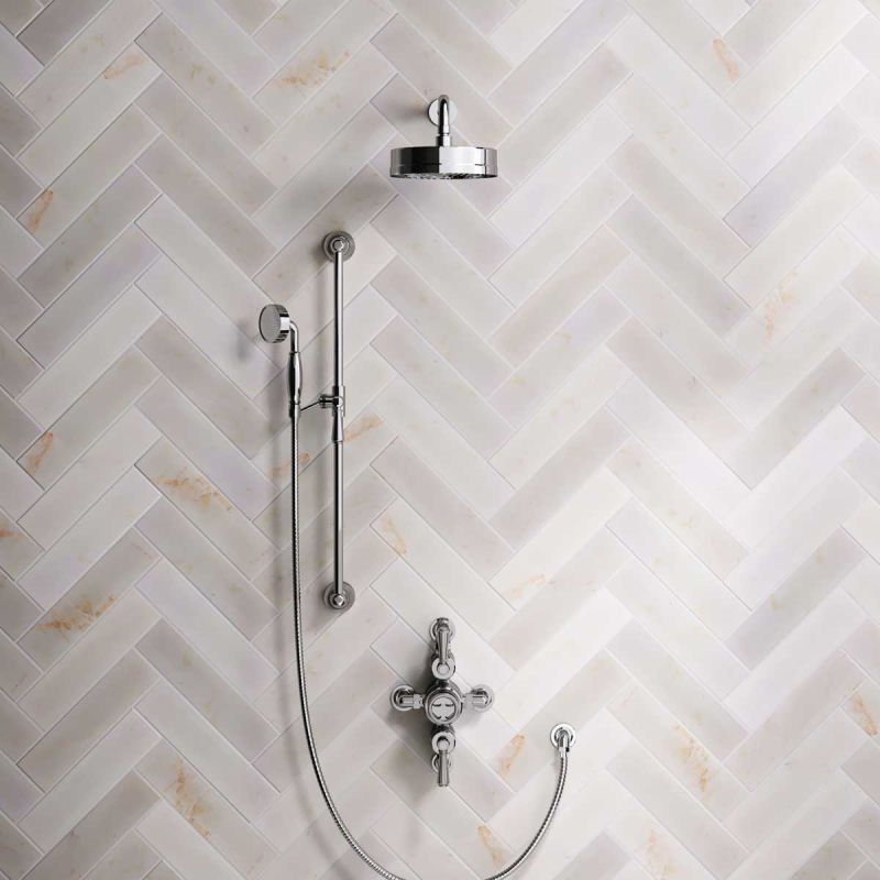 The Klee shower is a refined expression of industrial design, combining precision-engineered performance with bold, architectural detailing. Featuring a semi exposed dual outlet thermostatic valve, 8 inch overhead rose, separate slider rail handshower and tactile handwheel controls, it delivers a confident, utilitarian aesthetic without compromising on luxury. Available in a wide range of configurations and premium finishes to suit both exposed and concealed installations.