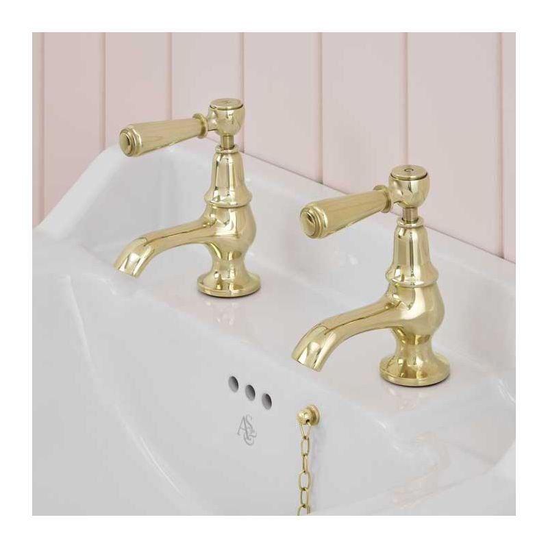 Linton 1/2BSP Basin Pillar Taps Metal Lever Timeless Brass