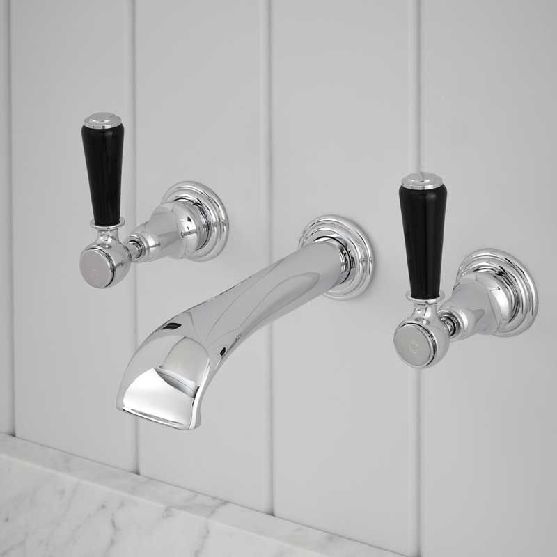 Linton - 3-Hole Basin Mixer - Wall Mounted - Black Lever - Chrome