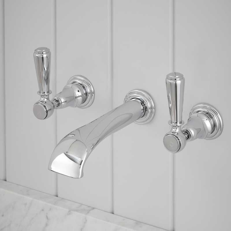 Linton Wall Mounted 3 Hole Basin Mixer - 175mm Spout - Metal Lever - Chrome