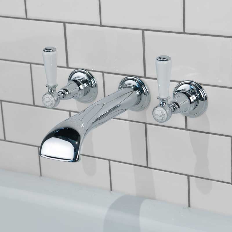 Linton Wall Mounted 3 Hole Bath Filler - White Lever - Chrome