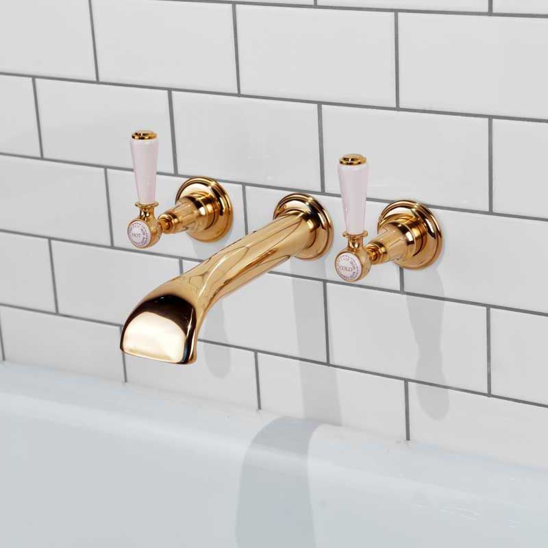 Linton - 3-Hole Bath Filler - Wall Mounted - White Lever