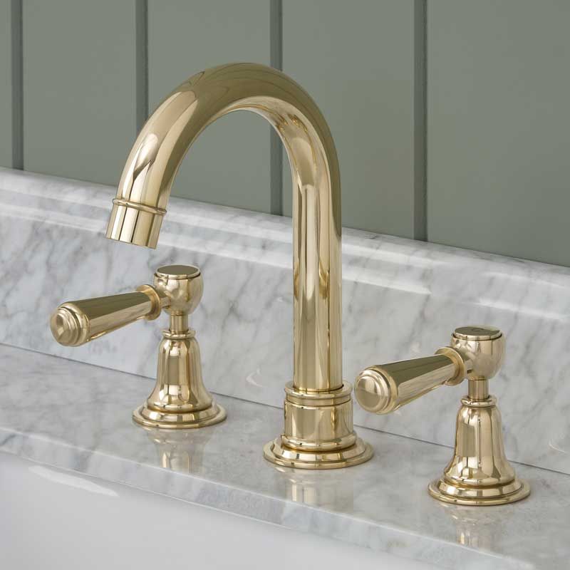 Linton 3 Hole Basin Mixer - Swan Neck Spout - Metal Lever - Gold Finish