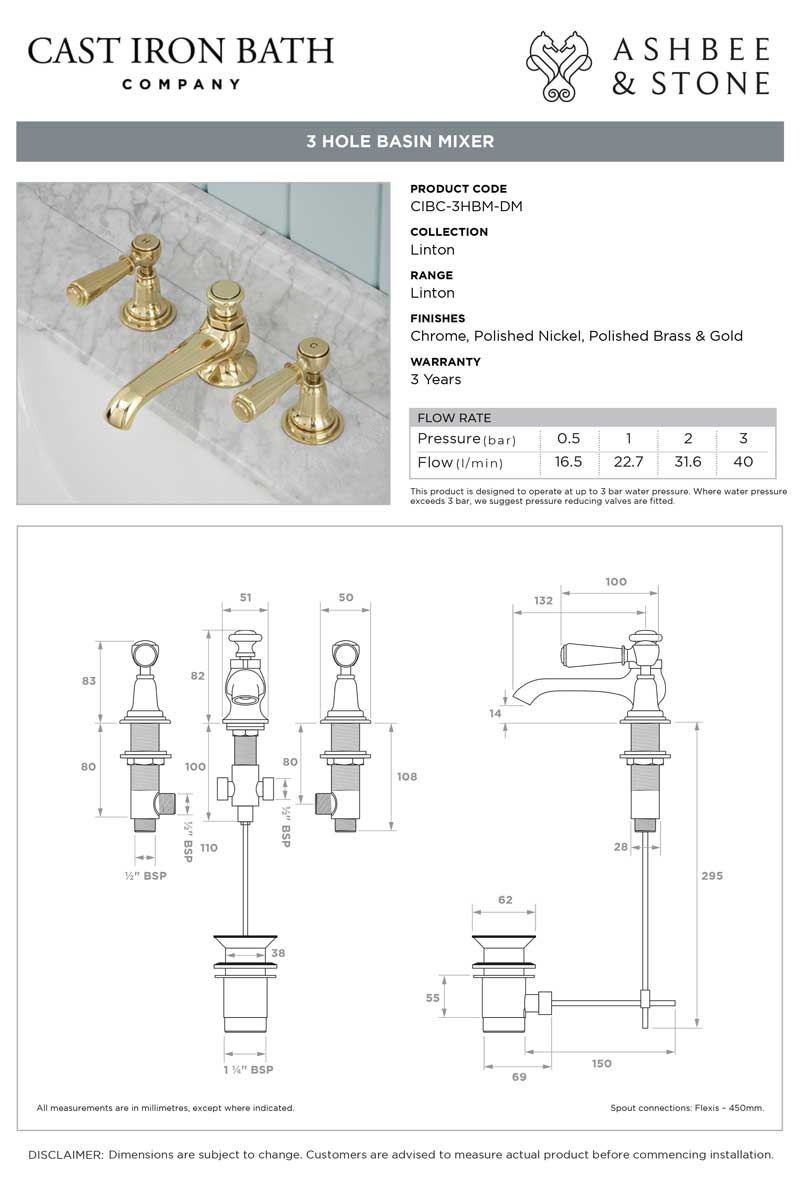 Designed and engineered by our team of specialists, these three hole basin mixer taps are made to the highest possible specification.