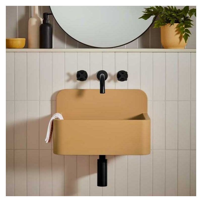 Oskar Rectangular Concrete Basin With Backsplash - Freestanding - Ochre Yellow