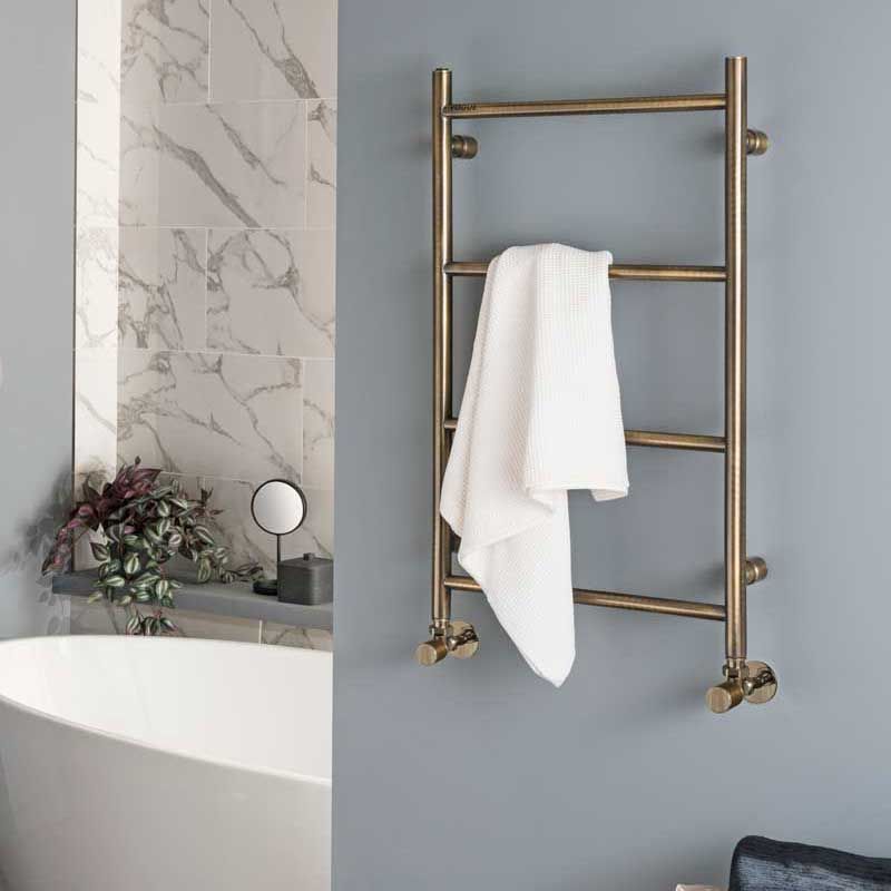 Vogue Pure Towel Rail - Brass Construction - Heating Only - Wall Mounted - Brushed Brass