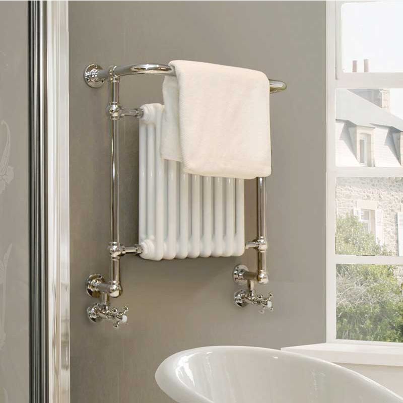 A refined look for any traditional setting…This towel warmer/ radiator combination creates an element of sophistication displaying the contrasting metallic frame alongside the decorative columns of the inset radiator.