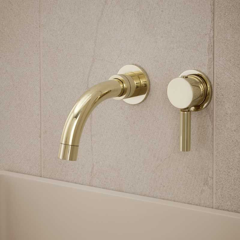 Bayor Wall Mounted 2 Hole Basin Mixer - 140mm Spout - Metal Lever - Living Brass