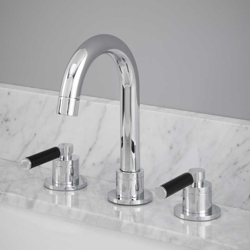 Senska - 3-Hole Basin Mixer - Deck Mounted - Black Lever - Chrome
