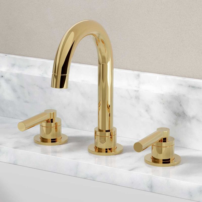 Bayor Deck Mounted 3 Hole Basin Mixer - Metal Lever - Living Brass