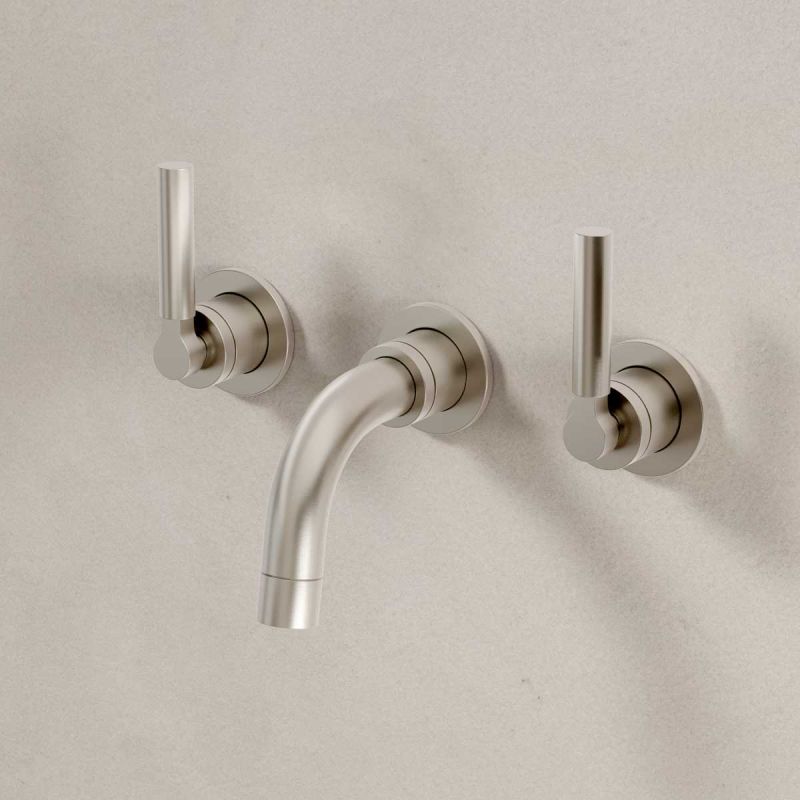 Bayor Backsplash Basin Mounted 3 Hole Basin - Metal Lever - Brushed Nickel