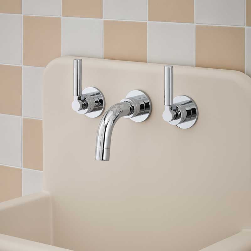Bayor Backsplash Basin Mounted 3 Hole Basin - Metal Lever - Chrome