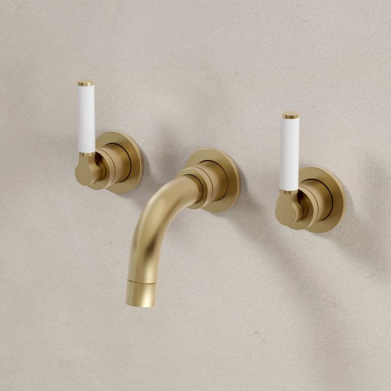 Bayor Backsplash Basin Mounted 3 Hole Basin - White Lever - Brushed Brass