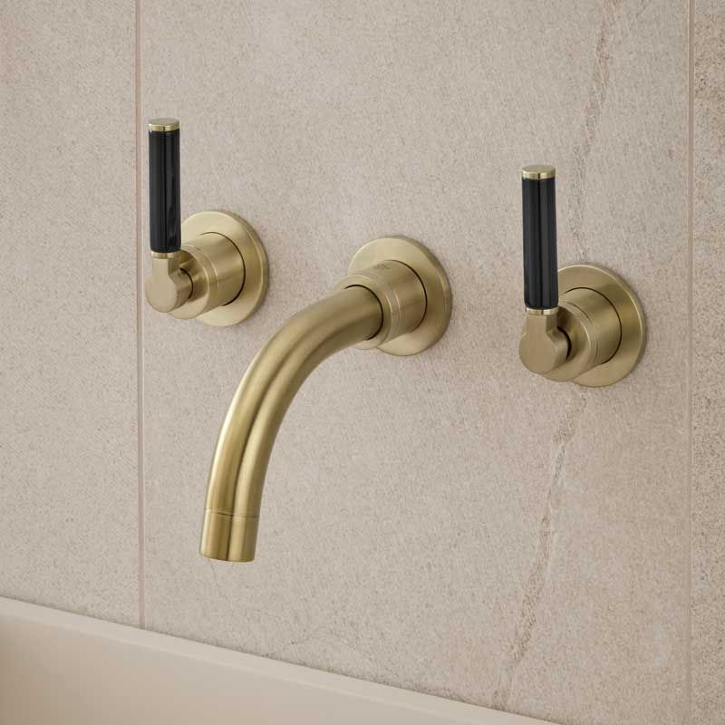 Senska - 3-Hole Basin Mixer - Wall Mounted - Black Lever - Short Spout - Brushed Brass