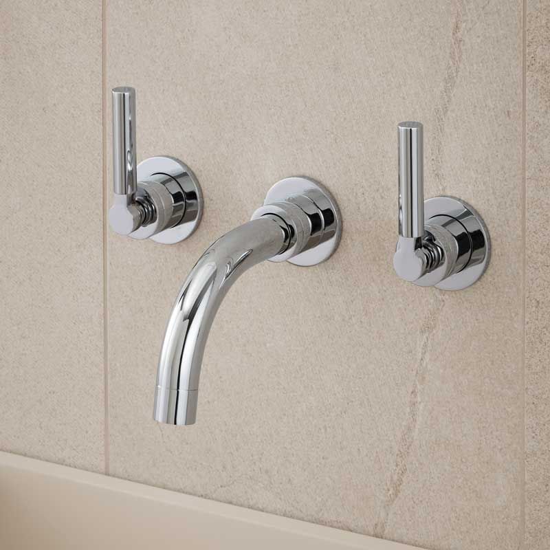Bayor Wall Mounted 3 Hole Basin Mixer - 160mm Spout - Metal Lever - Chrome