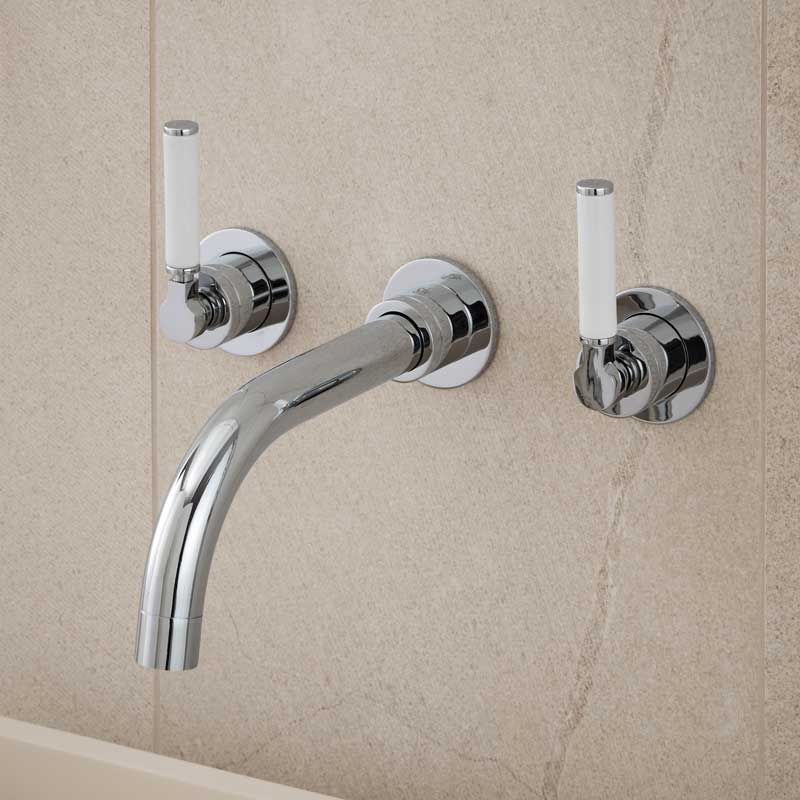 Senska - 3-Hole Basin Mixer - Wall Mounted - White Lever - Chrome