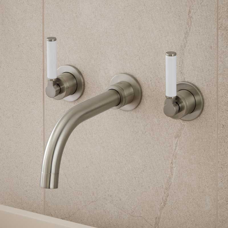 Senska - 3-Hole Basin Mixer - Wall Mounted - White Lever