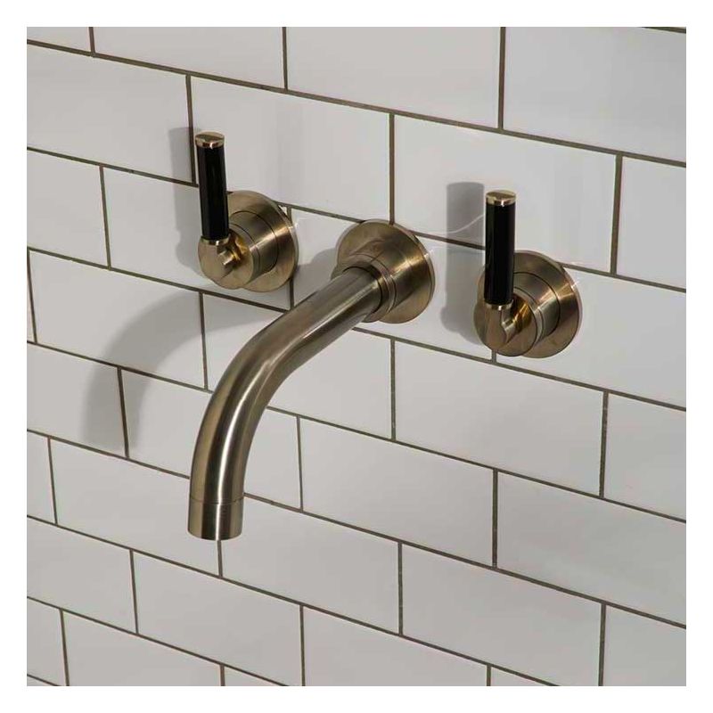 Bayor Wall Mounted 3 Hole Bath Filler - 220mm Spout - Black Lever - Brushed Nickel