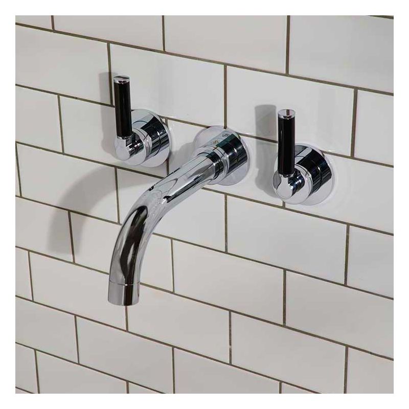 Senska 3-Hole Bath Filler - Wall Mounted - Black Lever - Chrome