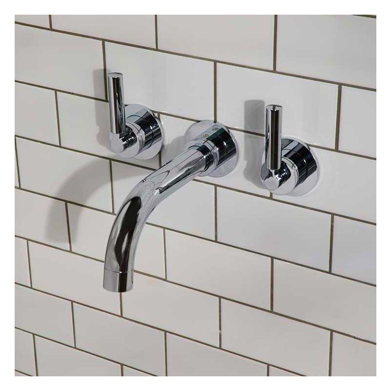 Bayor Wall Mounted 3 Hole Bath Filler - 220mm Spout - Metal Lever - Chrome