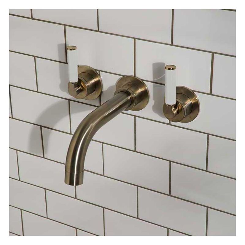 Senska 3-Hole Bath Filler - Wall Mounted - White Lever