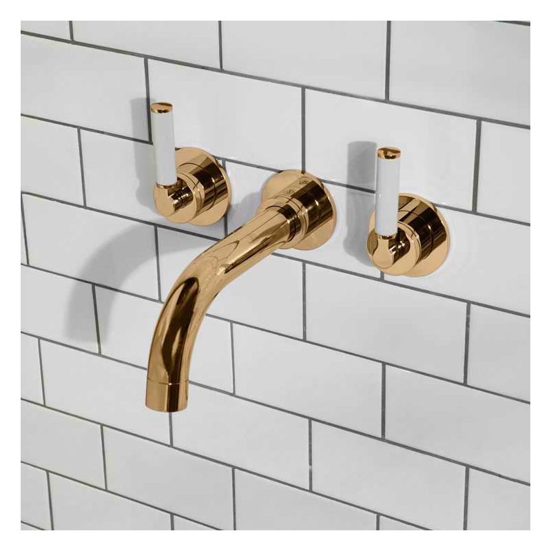 Bayor Wall Mounted 3 Hole Bath Filler - 220mm Spout - White Lever - Living Brass