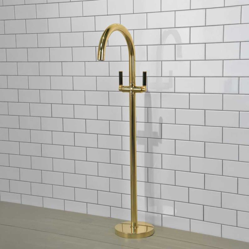 Senska - Bath Filler - Floor Mounted - Black Lever - Polished Brass (Minimum 1 bar pressure)