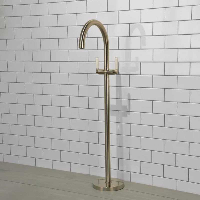 Senska - Bath Filler - Floor Mounted - White Lever - Brushed Nickel (Minimum 1 bar pressure)