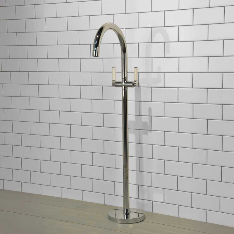 Senska - Bath Filler - Floor Mounted - White Lever - Chrome (Minimum 1 bar pressure)
