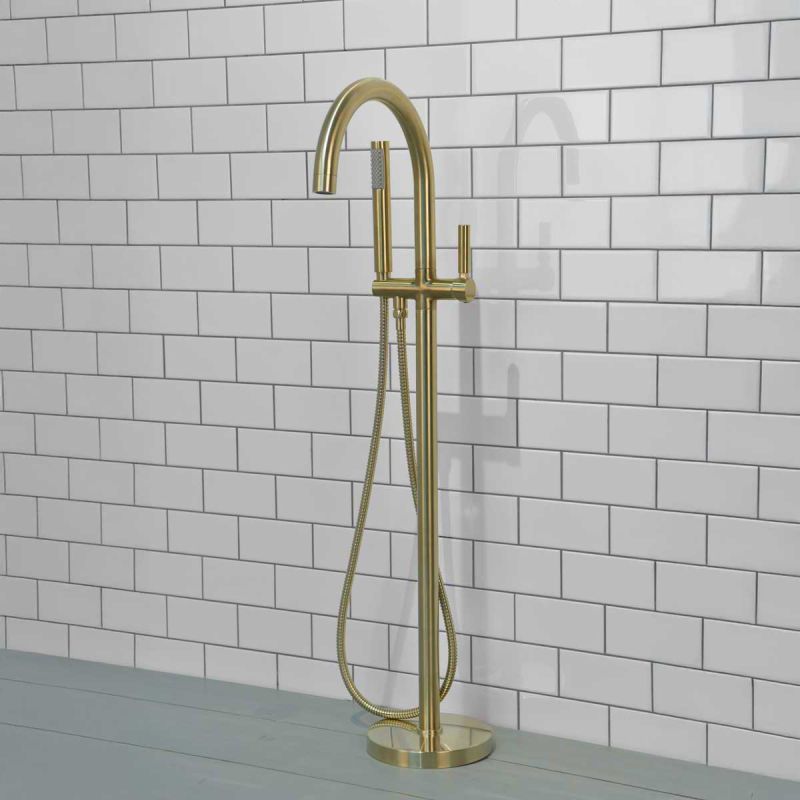 Bayor Floor Mounted Bath Shower Mixer - Metal Lever - Brushed Brass