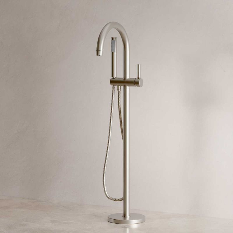 Bayor Floor Mounted Bath Shower Mixer - Metal Lever - Brushed Nickel