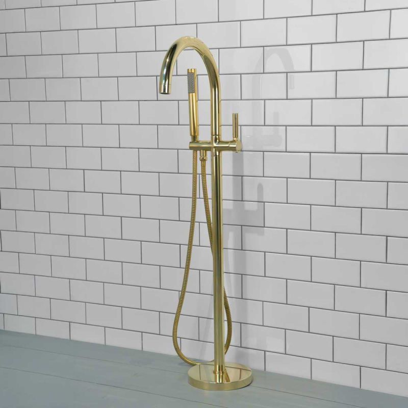 Senska - Bath Shower Mixer - Floor Mounted - Metal Lever - Polished Brass (Minimum pressure 2 bar)