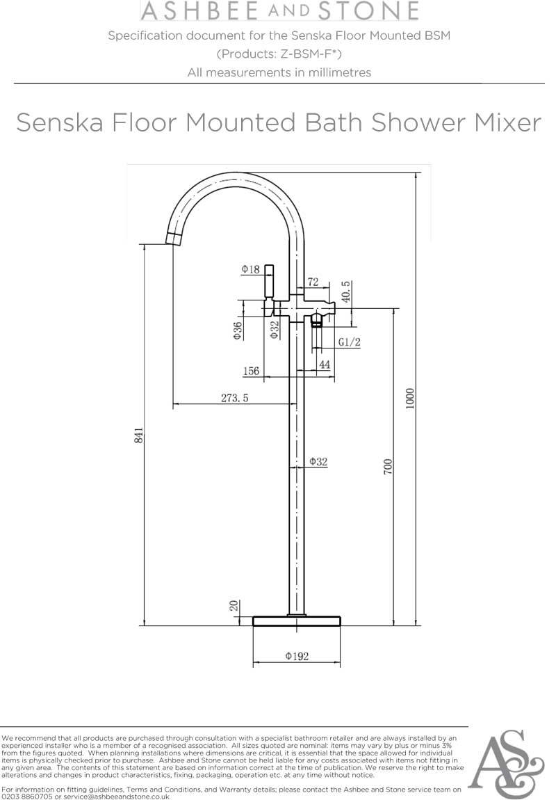 Senska - Bath Shower Mixer - Floor Mounted - White Lever (Minimum 2 bar pressure)