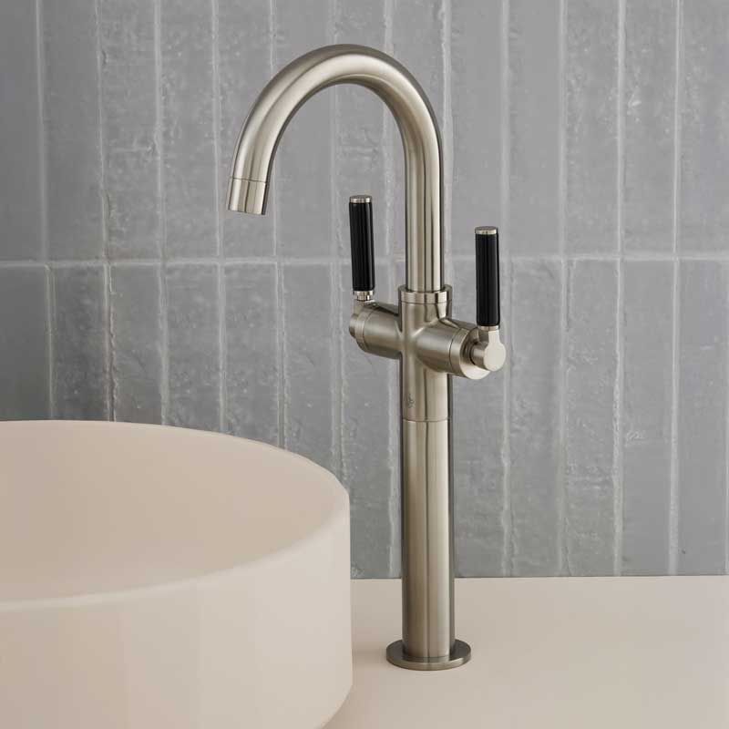 Bayor Deck Mounted Monobloc Basin Mixer with 160mm Extension - Black Lever - Brushed Nickel