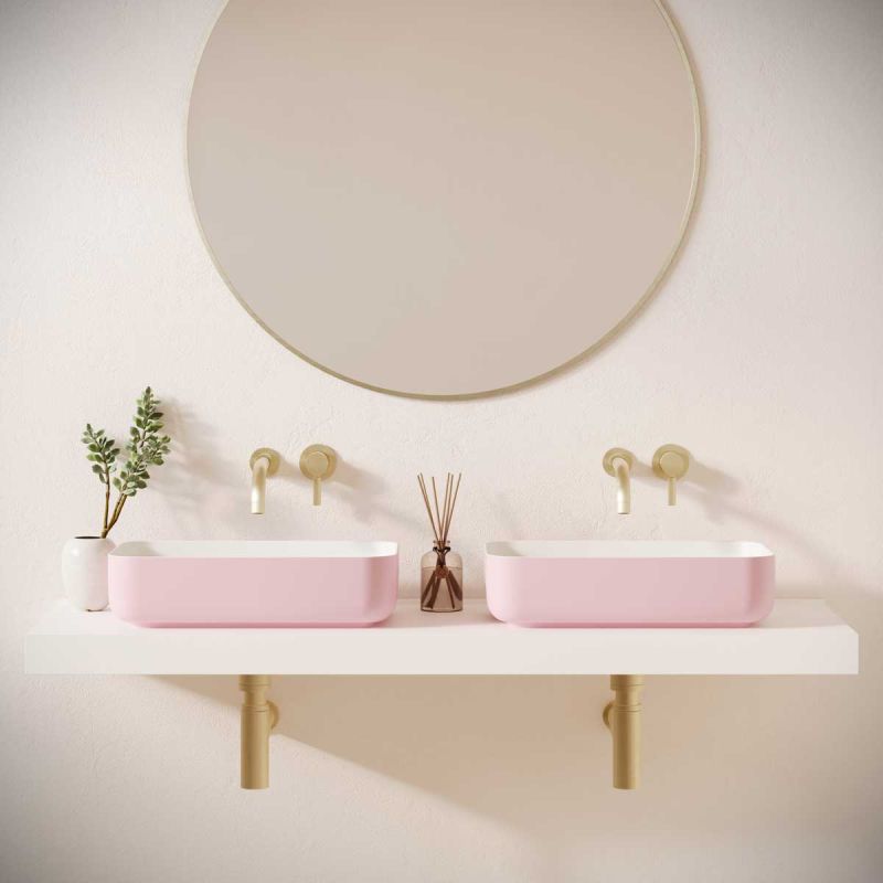 Elevate your bathroom design with the bold sophistication of the Sigmar Stone Countertop Basins with Vasco Double Shelf - Ice Hot Pink crafted from our unique RossaStone® composite. Designed by Ashbee and Stone, this eye-catching coloured basin delivers a perfect blend of style, quality, and functionality for contemporary and modern interiors.