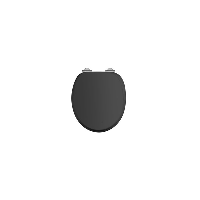 The Burlington range of bar hinge and soft close toilet seats add the perfect finishing touch to the period bathroom. This is a Matt Black coloured moulded wooden seat with chrome plated soft close hinges.
