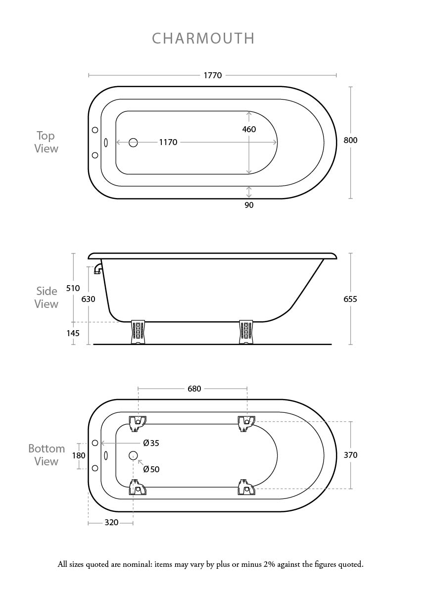 Quoted sizes are nominal: our baths are hand-made and so measurements may vary by plus or minus 5% against the figures quoted.