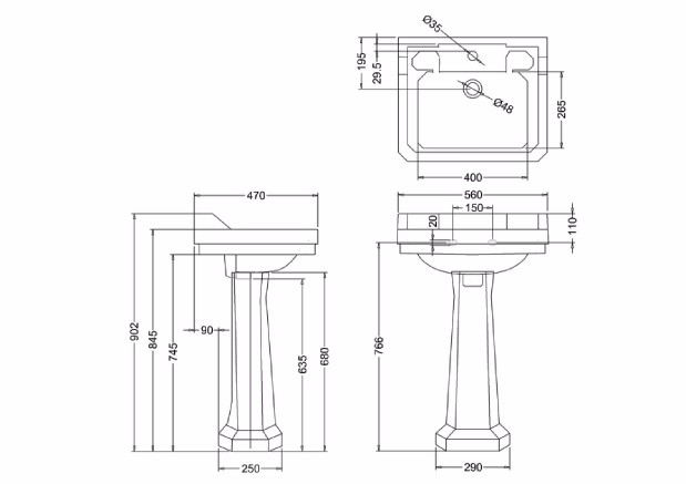 The Burlington Edwardian Medium Basin & Pedestal