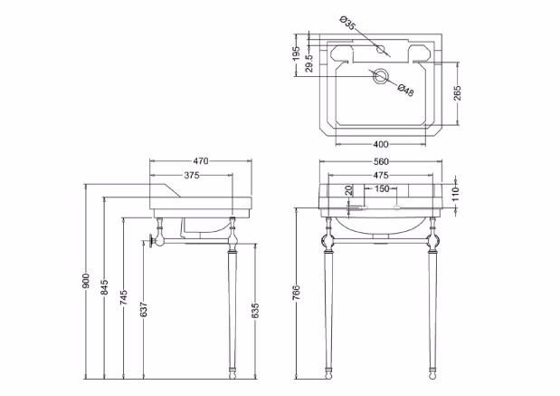 The Burlington Edwardian Medium Basin & Wash Stand